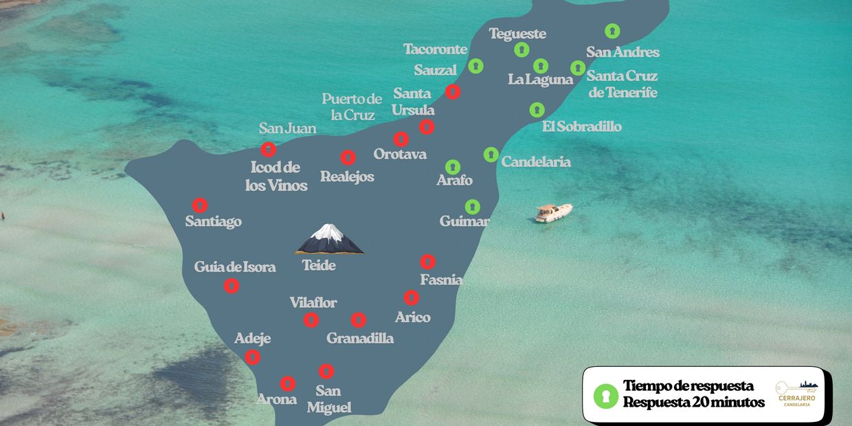 En Cerrajero Candelaria ofrecemos servicio de cerrajería en toda la isla de Tenerife, con especial cobertura en el eje Santa Cruz – La Laguna – Candelaria, donde llegamos en 20 minutos o menos.
